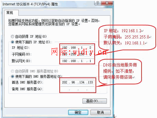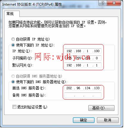 (也可将IP地址设置为自动获取,DNS建议手动指定)