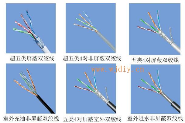 双绞线常见的有三类线,五类线和超五类线,以及六类线,前者线径细而后者线径粗,具体型号如下: