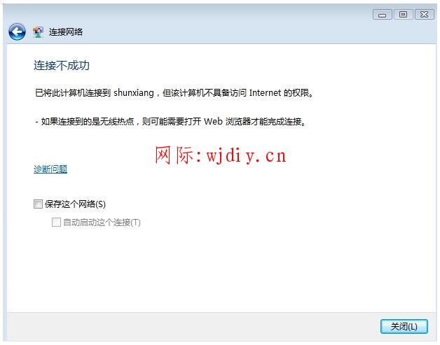 已将此电脑连接到xx(SSID),但该电脑不具备访问Internet的权限