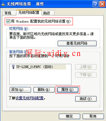 3、打开“无线网络配置” ,在首选网络中选择信号点击“属性”。
