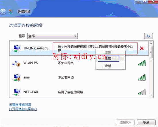 « 用于網絡的保存在该电脑上的设置与網絡的要求不匹配 网络维护公司 发布于 2013-1-3 15:38 阅读:22934 网络维护 Vista系统下无线连接时显示“用于网络的保存在该电脑上的设置与网络的要求不匹配”,怎么办? Vista系统,无线连接提示“用于网络的保存在该电脑上的设置与网络的要求不匹配”。如下图: 解决方法: 在该信号上右键,选择“属性”-“安全”,将安全类型、加密类型及安全密钥修改为和路由器中设置相同。 请先 登录 再评论 输入验证码