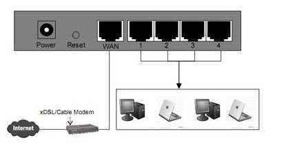 水星无线路由器设置第一步:将家里的internet网入口网线与路由器的WAN口连接,再用事先准备好的网线将电腦与路由器的LAN口连接(如下图所示)。
