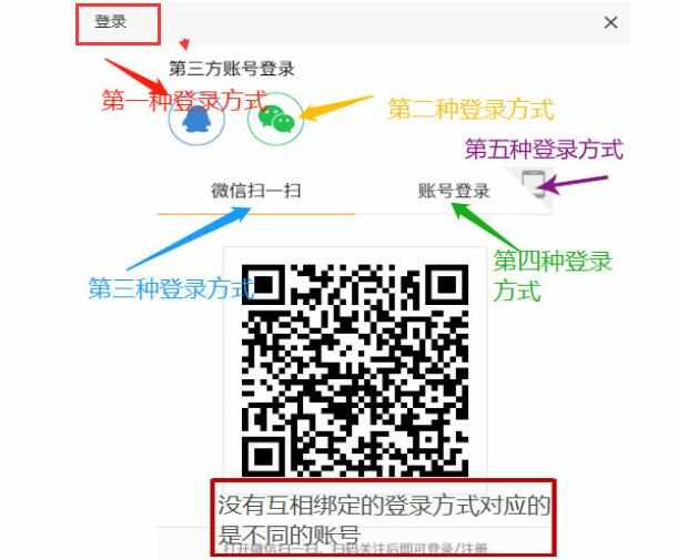 注意:没有互相绑定的登录方式,对应的是不同的账号