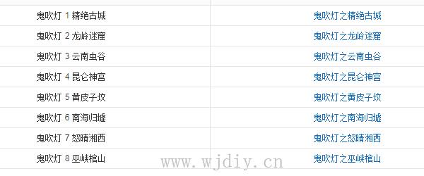 第一部: 《鬼吹灯之精绝古城》 《鬼吹灯之龙岭迷窟》 《鬼吹灯之云南虫谷》 《鬼吹灯之昆仑神宫》