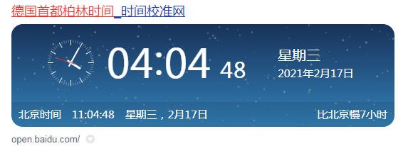 北京时间校准 美国时间慢13小时 英国时间慢8小时 德国时间慢7小时