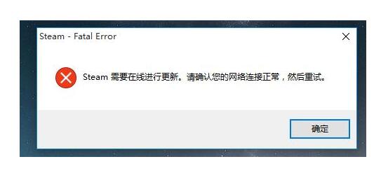 五种方法来解决steam需要在线更新 请确认您的网络连接。在连接着网络的情况下更新steam软件,但是却被提示:“steam需要在线进行更新。请确认您的网络连接正常,然后重试”如下图: