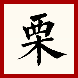 - 栗子 战栗 颤栗 醋栗 栗色 栗暴 栗凿 板栗 地栗 惴栗 倾栗 惨栗 栗罅 惕栗