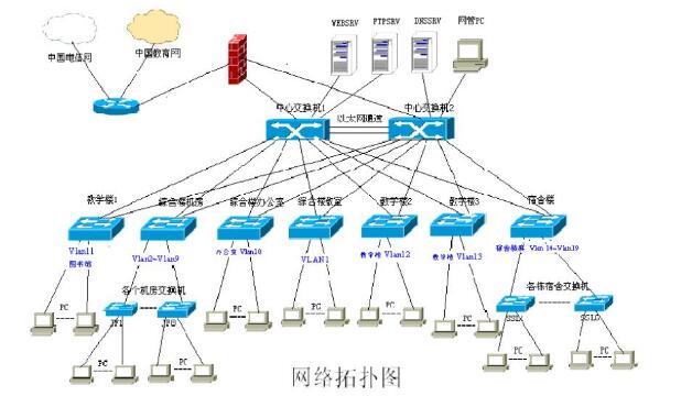 综上所述, 我院的结构化综合布线系统 由工作区子系统、 水平子系统、垂直子系统、 设备 间子 系统、 管理子系统, 建筑群子系统等六个子系统组成