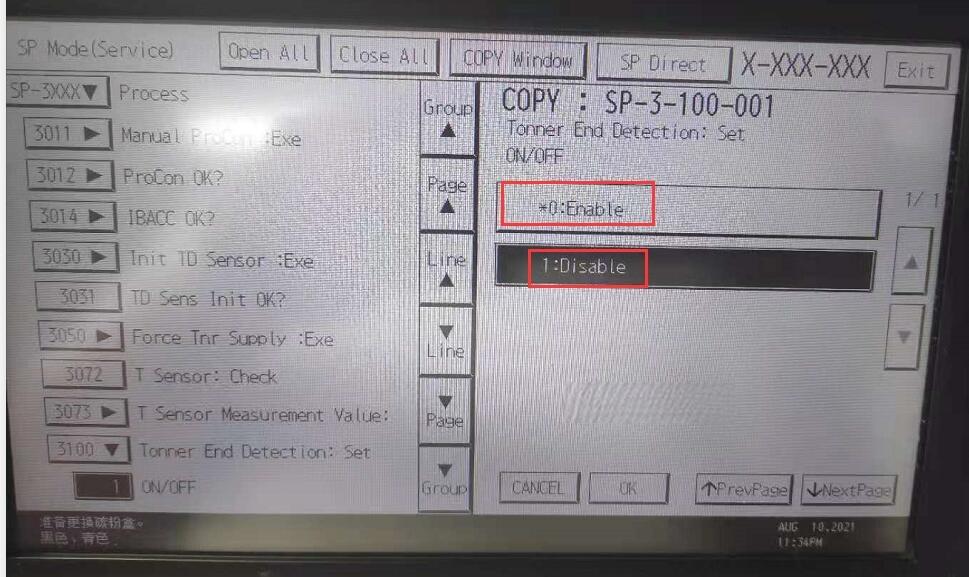 进806182就按3100会看到如上图:0为默认打才可以检测碳粉是否用尽;1为关掉就不会报及提示 碳粉是否用尽;反会报错误代码。不建议关;维修模式3100关闭碳粉用尽检测,能正常使用,但是印品很淡