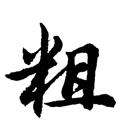 财大气粗、粗糙、粗粝、粗拙、粗浅、粗鄙、粗枝大叶、粗通、粗心大意、粗人、抱粗腿、粗豪、五大三粗、粗率、粗放、粗工、粗重、粗实、粗野、粗略、粗俗、动粗、气粗、粗纱、粗陋、粗茶淡饭、粗中有细、粗疏、粗劣、粗制滥造、执粗井灶、粗轧、粗酒、日粗、粗绒棉、粗缕、粗粗咧咧、手感粗硬、粗书、粗糲
