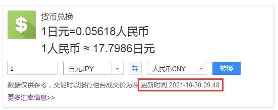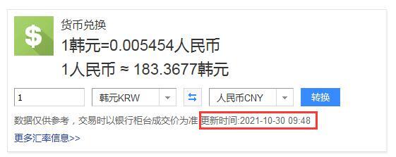 2021.10.30日元对人民币汇率 欧元兑换人民币 韩元汇率对人民币 表图