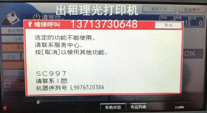 理光c3503报错误SC899-00代码SC997-00原因及解决方法