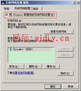 点击上图的“更改高级设置”,选中“用windows 配置我的无线网络”,即可配置无线网 络。