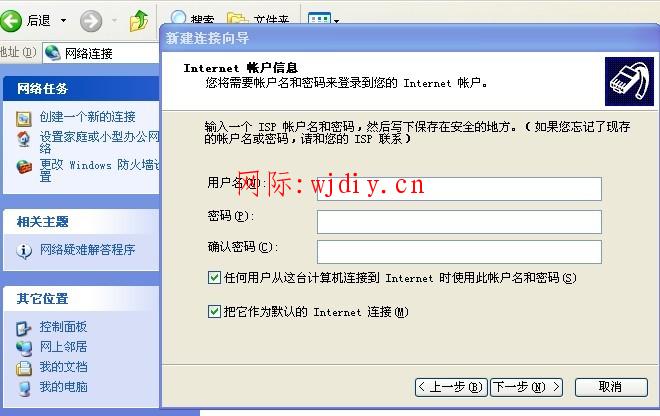 密码的宽带连接来连接”点下一步,输入ISP名称,这个随便输入,它会作为你在桌面上的快捷方式的名称。点下一步,输入