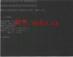 进入系统后提示DOS提示符,输入“copye:\i386\ntldrc:\”命令,其中e:代表当前光驱所在的盘符,按【Enter】键,如下图所示。