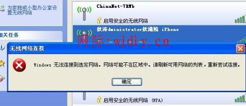 iphone4用个人热点上网,笔记本可以搜索到iphone信号,连接的时候电腦老显示网络可能不在区域中?