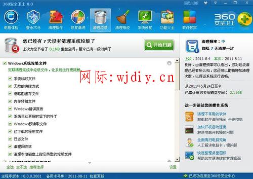 « 电脑软件清理垃圾,如何用软件清理电脑垃圾? 计算机基础知识 发布于 2013-5-14 04:56 阅读:9911 超级知识宝库 这里用360安全卫士,一般电腦安装的安全卫士都有这个功能(你可以选择其它的软件,网上很多下载的),打开安全卫士,选择清除垃圾,然后点击开始扫描,这里扫描有段待的时候,等扫描完点击清除垃圾就OK啦。 请先 登录 再评论 输入验证码