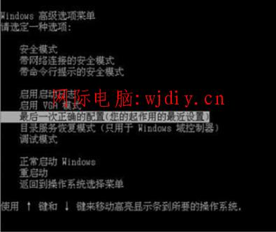 第2步,用向下(向上)方向键移动光标到“最后一次正确的配置”,如图所示,按回车键,系统就会利用利用最后一次正确配置修复、并启动系统。
