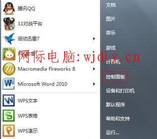 ⒈)首先我们准备一个U盘,当然手机内存卡也可,但建议最好使用U盘,然后将U盘插入Win7电腦中,然后进入桌面左下角,从开始--≯控制面板