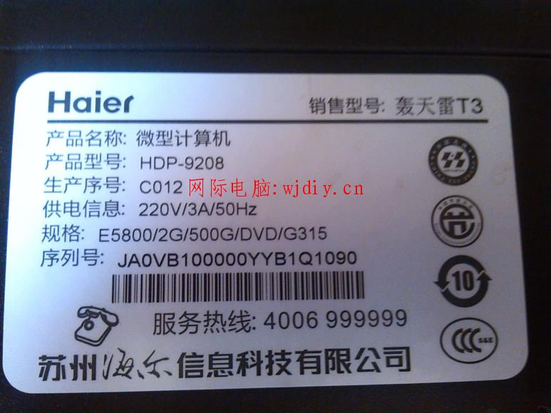 刚才有个客户包一台haier电腦HDB-9208来网际电腦民治店维修