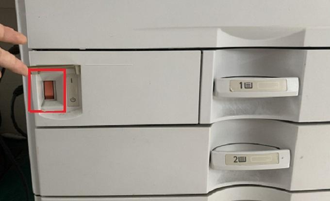 ricoh打印机的开关在打印机纸格的左边,如图所示