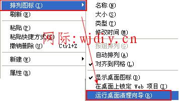 6、在桌面上的图标尽量不要过多,最多保留十个左右的即可。在桌面上存在的快捷键,不经常用,但是不想删除,我们可以再桌面上单击鼠标右键,然后选择排列图标,之后选择运行桌面清理向导即可。
