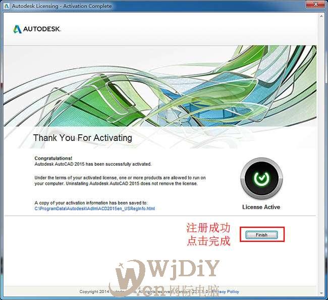 CAD2015 64位英文版安装完成,点击完成。第八步:重新启动电腦
