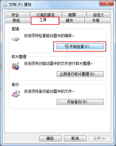 3、然后在打开窗口的”工具“选项页面下,点击开始检查 按钮。