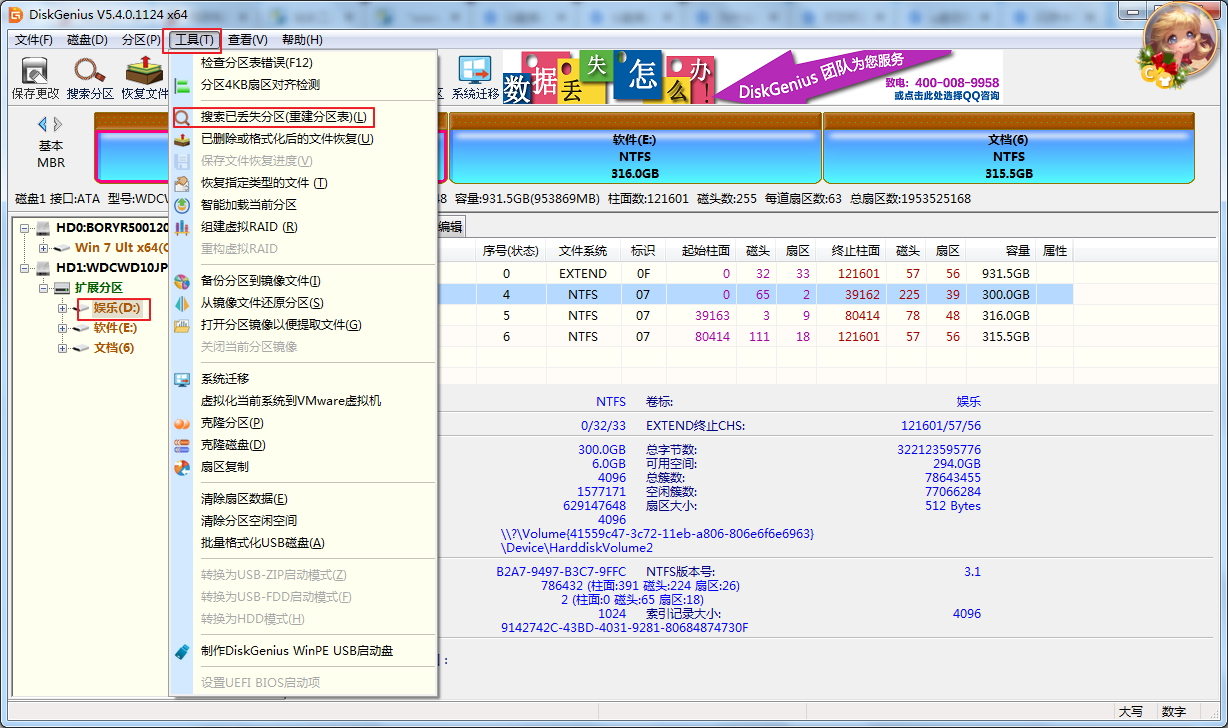如果是文件原因的话就要麻烦一点,首先去百度下载一个硬盘恢复软件,我们这里用到的是DiskGenius。