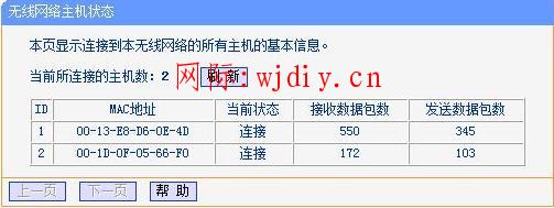 然后在配置界面-无线设置-主机状态中查看连接到本无线网络的所有主机的基本信息。