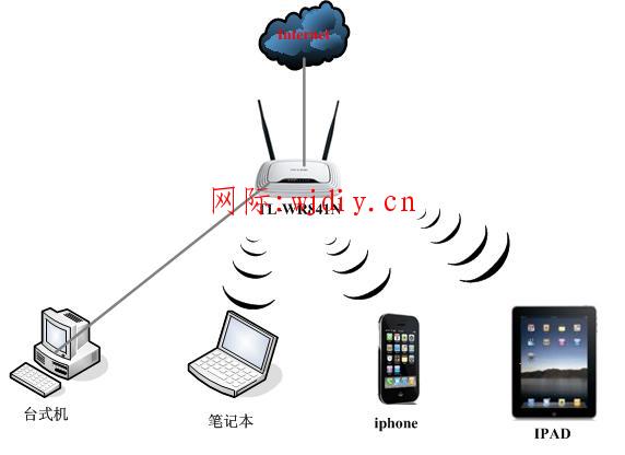 说明:无线路由器相当于一台有线路由器加一个无线发射的小型“基站”,可以同时满足有线电腦、无线的笔记本、平板电腦等终端同时接入共享宽带上网。