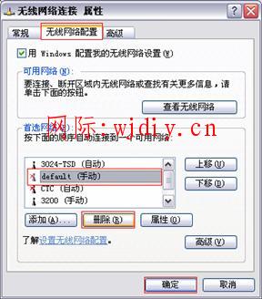 如下图,点击“无线网 络配置”选项卡,然后选中首选网络中的无线网 络配置式,点击删除,将其逐个删除,最后点击确定。 点击查看原图