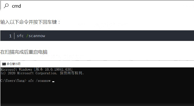 在系统中按win+r,输入cmd,右键以管理员身份运行 输入sfc /scannow扫描完成后重启电腦。