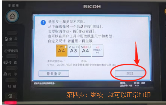 第四步:按显示屏(如上图)继续 就可以正常打印了。