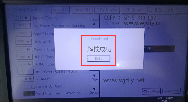 理光打印机器出现SC554-02报错理光复印机出现SC554-02代码处理方法(理光打印机解锁定影命令代码)理光打印机报错SC554理光复印机出现SC554-02解锁定影命令代码 第三步:提示Completed解锁成功!