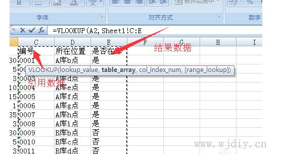 表图六:第二步就是输入你引用数据的答案所在的区域,就是输入第二个参数,如下图例子.要求同时包含引用数据和结果数据.并在范围后面输入英文逗号.