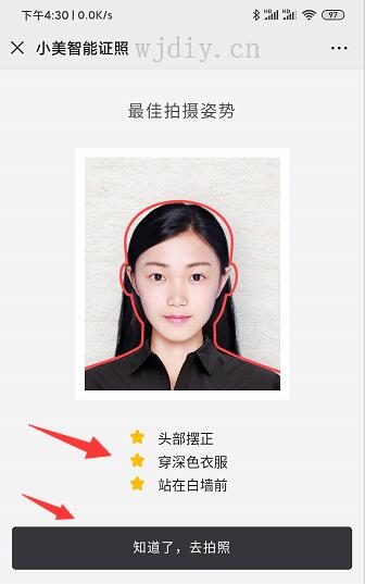 第二步选择小美智能证照,最佳拍摄姿势 。