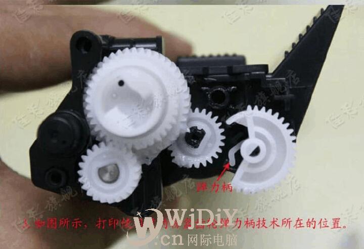lt201清零电腦上提示无墨粉打印机上面那个灯一闪一闪 这是需要墨盒清零 ,清零方法是拆开墨盒左边两个螺丝 把那个半圆齿轮转到如图位置lt201清零硒鼓清零